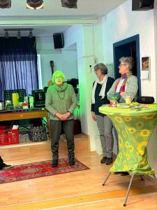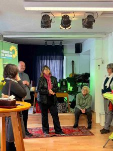 Daniela Hahn griff den Gedanken des Miteinanders auf. Die Skandinavistin erklärte, was es mit den Zimtschnecken auf dem Veranstaltungsplakat auf sich hatte: Das „Grüne Café“ orientiere sich an der schwedischen „Fika“ – einer gemeinsamen Pause am Nachmittag, in der Menschen bewusst innehalten, sich austauschen und Gemeinschaft pflegen. Genau das sei das Ziel: ein Raum, in dem Menschen, die sonst nur nebeneinander wohnen und arbeiten, sich als Nachbarn begegnen und Freundschaften knüpfen.