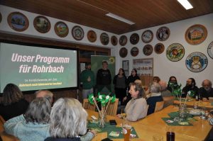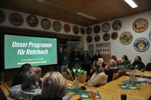 Mit einer Infoveranstaltung sind Rohrbachs Grüne in den Wahlkampf gestartet. Die Kandidaten der Listenplätze eins bis vier präsentierten das Programm: Im Zentrum stehen Begegnungsorte, Familie und Jugend, bezahlbares Wohnen, Umweltschutz und Mobilität.