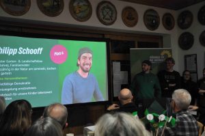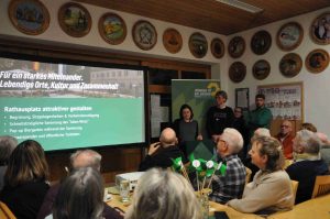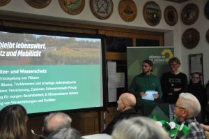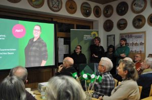 Der Ortsvorsitzende Stefan Rädlein umriss das Ziel des Abends: Statt ein „geschlossenes“ Programm vorzustellen, wolle man Ideen präsentieren, die im Austausch mit Bürgern weiterentwickelt werden sollen. Dabei setze die Partei auf Gespräche: an Haustüren, über die Website, in einer Umfrage und bei Formaten zum Kennenlernen, etwa einem Schafkopfturnier, einem Grünen-Café oder einem Pub-Quiz.